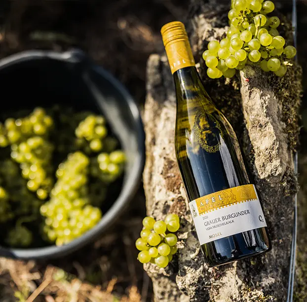 Si l'Elbling est notre tradition, les cépages bourguignons sont notre passion pour la finesse. Ici, à Nittel, sur la Haute Moselle, le pinot blanc, le pinot gris et le pinot noir trouvent dans les sols calcaires minéraux des conditions sans pareilles dans le monde entier. Au domaine Apel, nous mettons en valeur le caractère individuel de chaque cépage pour obtenir des vins de Bourgogne structurés, onctueux et d'origine incomparable.